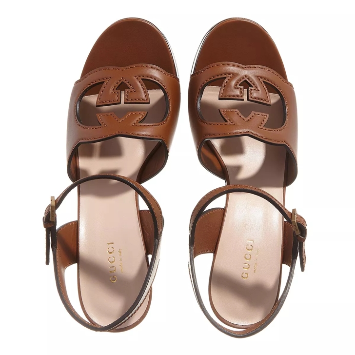 Brown sales gucci sandals, Gucci Interlocking G Sandal Cuir Leather Hoge Hak sales