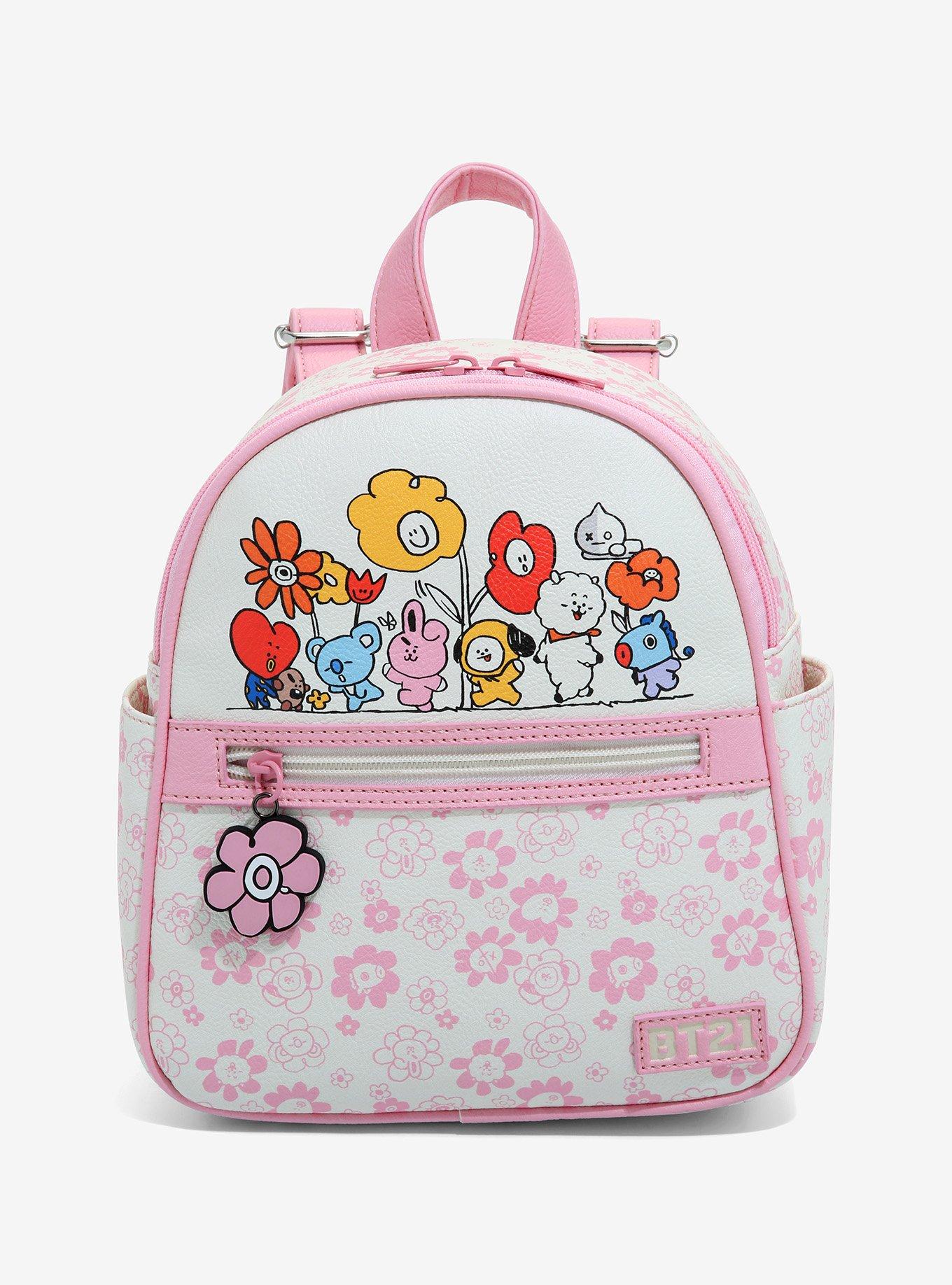 BT21 Flowers Pink Cream Mini Backpack
