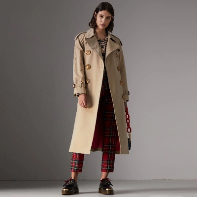 Bird Button Cotton Gabardine Trench Coat In Honey