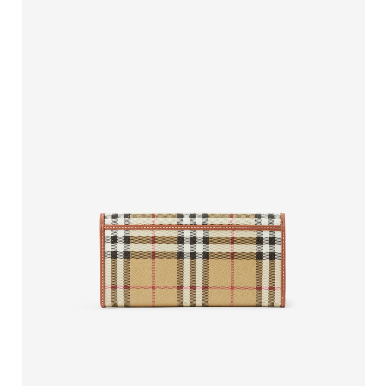 Check and Leather Continental Wallet in Dark birch brown Men Canvas Burberry Official