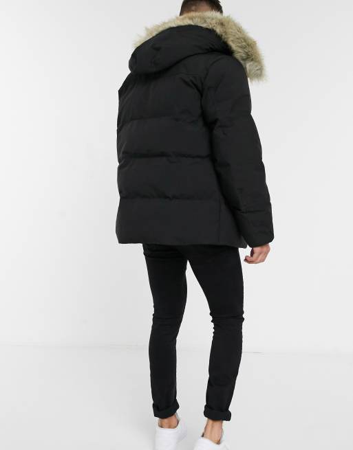 Calvin klein synthetic down bomber jacket sales with faux fur trim in black
