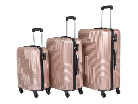 Senator Hard Case Trolley Luggage Set of 3 Suitcase for Unisex ABS Lightweight Travel Bag with 4 Spinner Wheels KH110 Rose Gold
