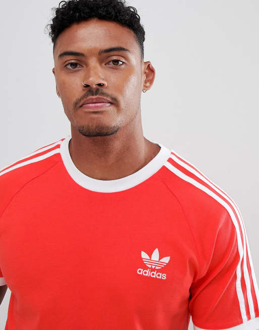 adidas Originals California T Shirt mit 3 Streifen in Rot