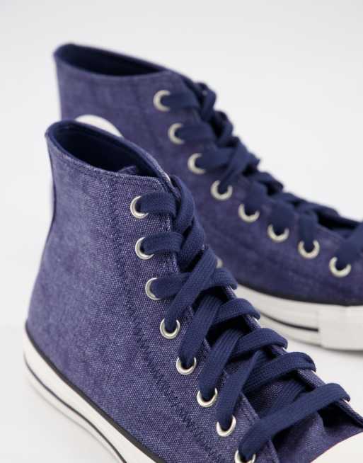 Chuck taylor sales washed denim, Converse Chuck Taylor All Star Hi Washed Denim trainers in midnight navy sales