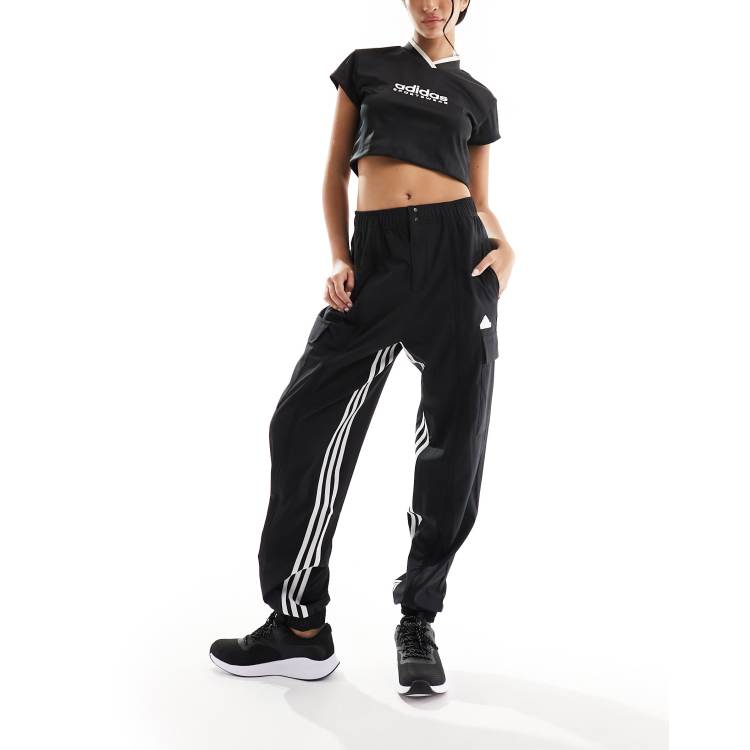 adidas Dance 3 Stripes High Waisted Tapered Cargo Joggers Pants