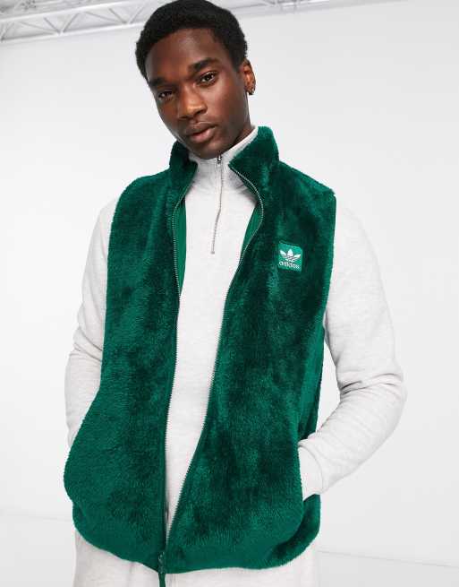 adidas Originals Essentials fluffy full zip vest in dark green ASOS