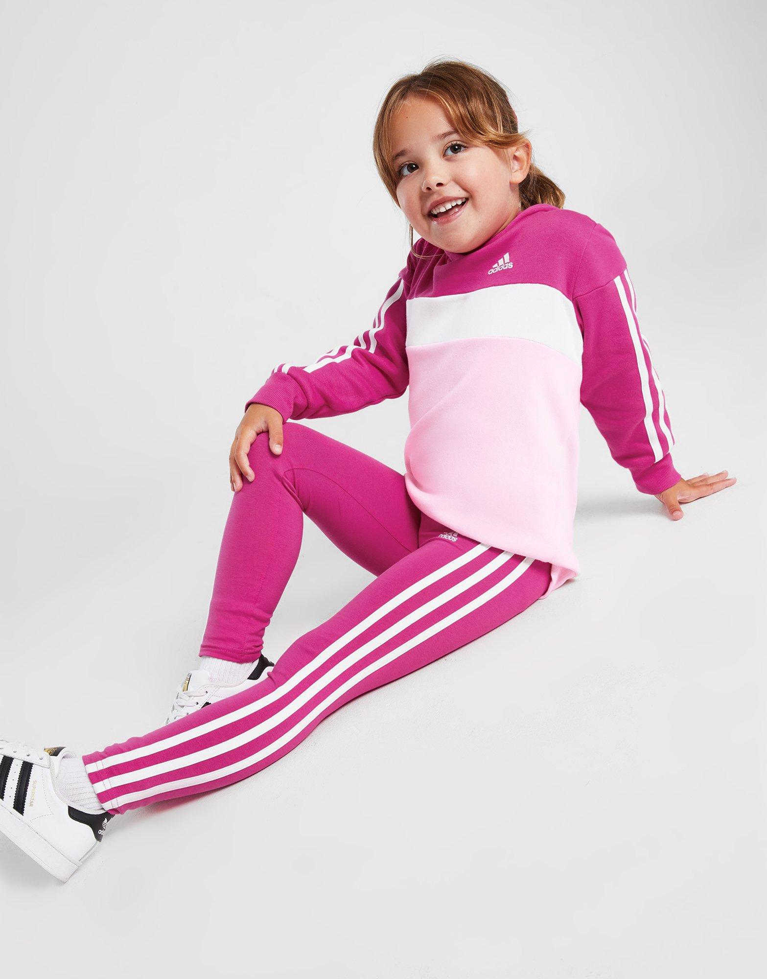 Pink adidas Girls 3 Stripes Hoodie Leggings Set Children JD