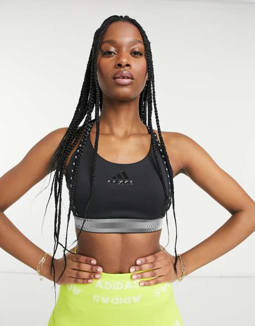 Adidas sales logo bra, adidas Training mid support bra with taped logo in black ASOS sales