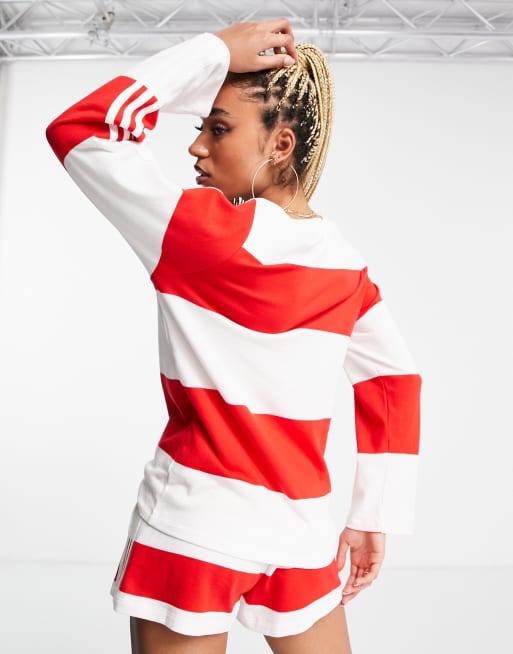 adidas Originals resort long sleeve striped top in red and white