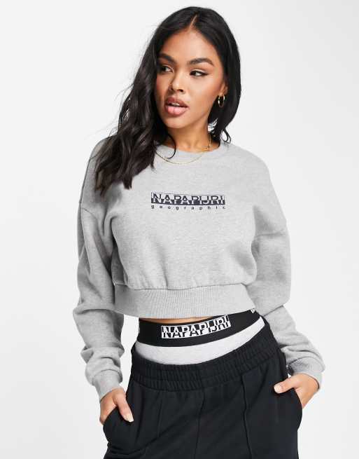 Napapijri Felpa corta grigia con logo squadrato ASOS