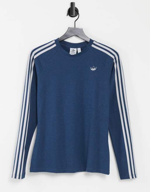 adidas Originals adicolor three stripe long sleeve t shirt in navy