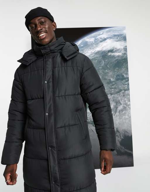 ASOS DESIGN floor length puffer jacket with detachable in black