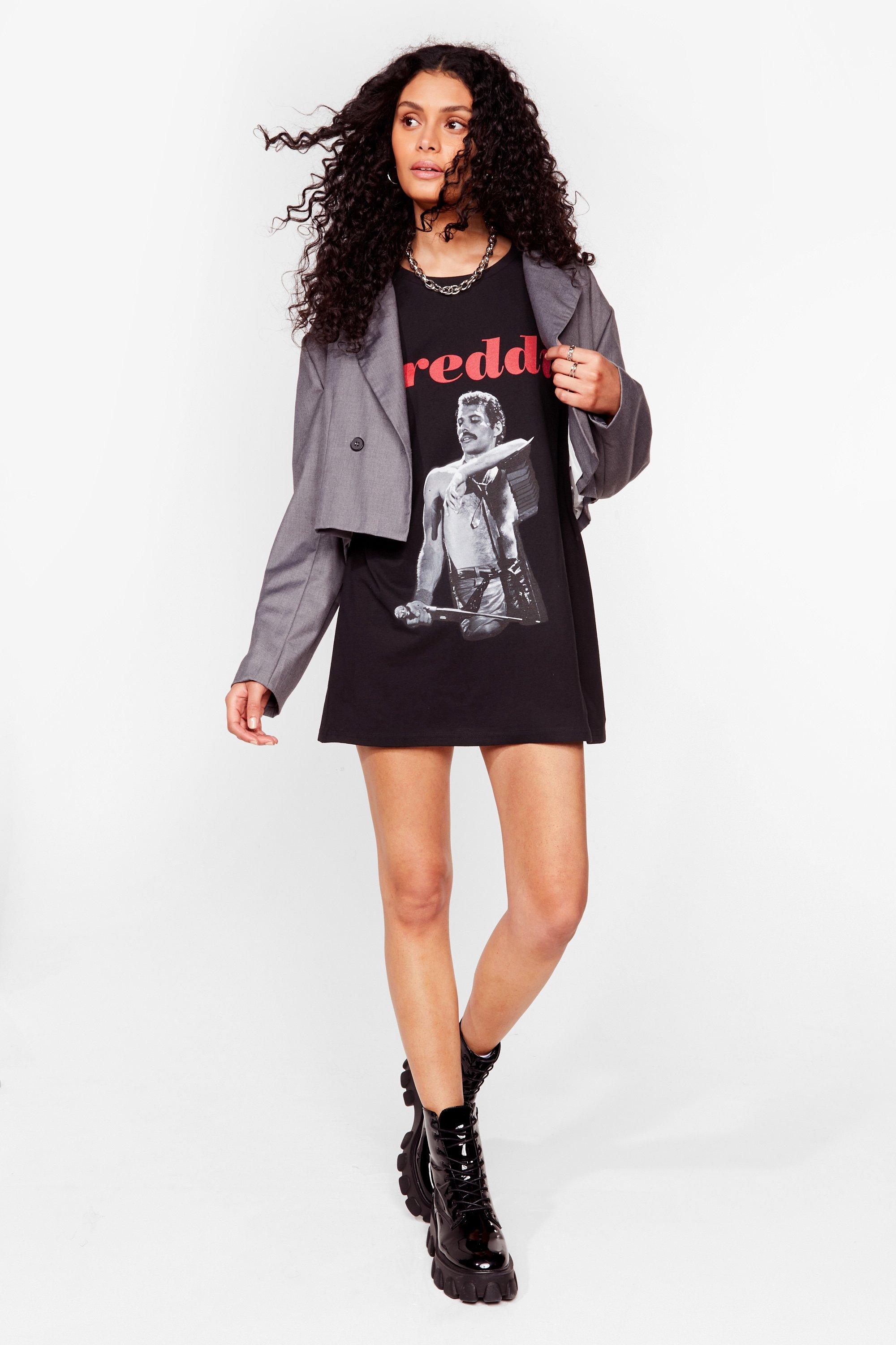 Women s Freddie Mercury Licensed T Shirt Dress Boohoo UK
