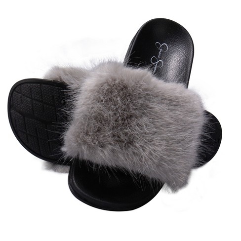 Jessica Simpson Womens Fuzzy Open Toe Slide Slipper Grey Fluff
