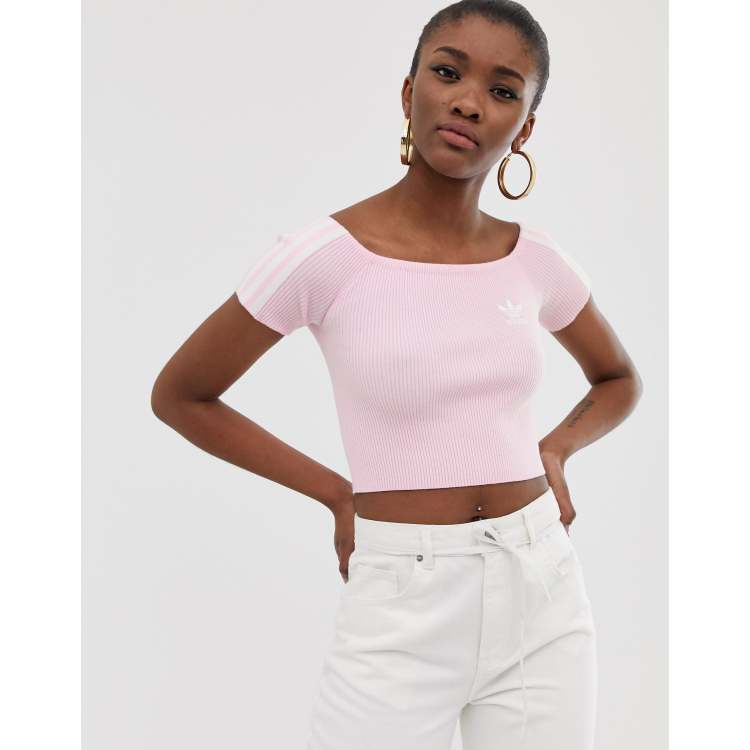 Adidas off the sales shoulder shirt, adidas Originals off shoulder knitted tshirt in pink sales