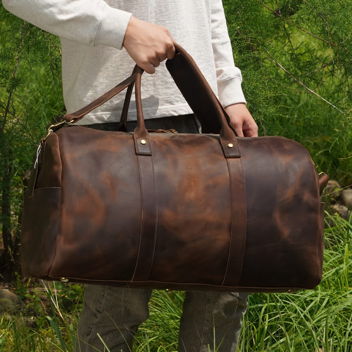 Genuine sales leather holdall, Genuine Leather Holdall Worn Dark Brown Touri Wolf Badger sales