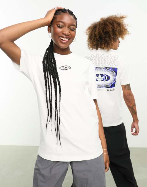 adidas Originals Rekive Uniseks T shirt met grafische print op de achterkant in wit