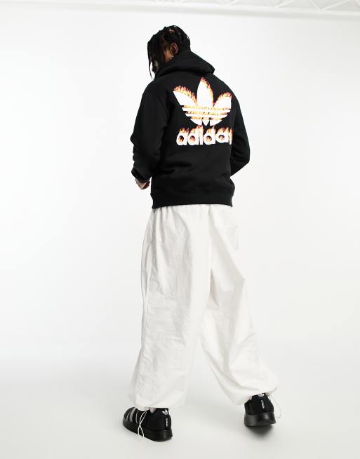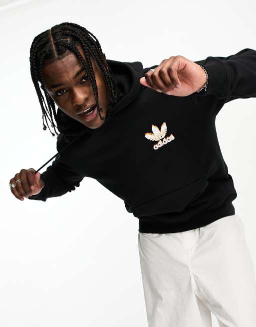 Adidas originals hoodie sales with printed trefoil, adidas Originals Hoodie met grafische Trefoil fire print in zwart sales