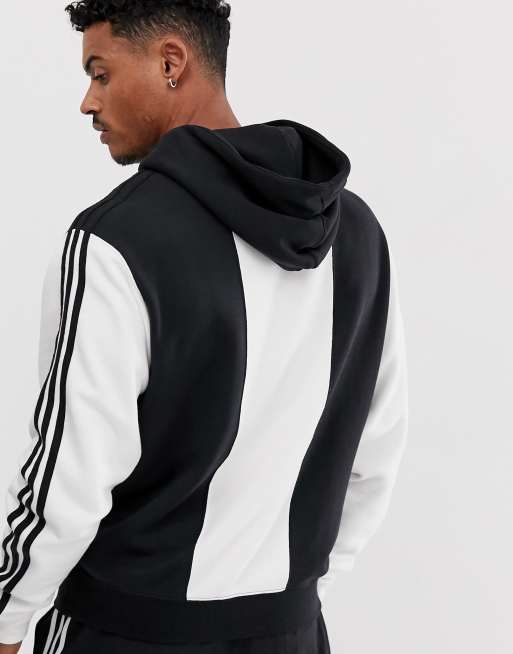 Adidas originals hoodie with stripes and central logo sales in white, adidas Originals hoodie with stripes and central logo in white sales