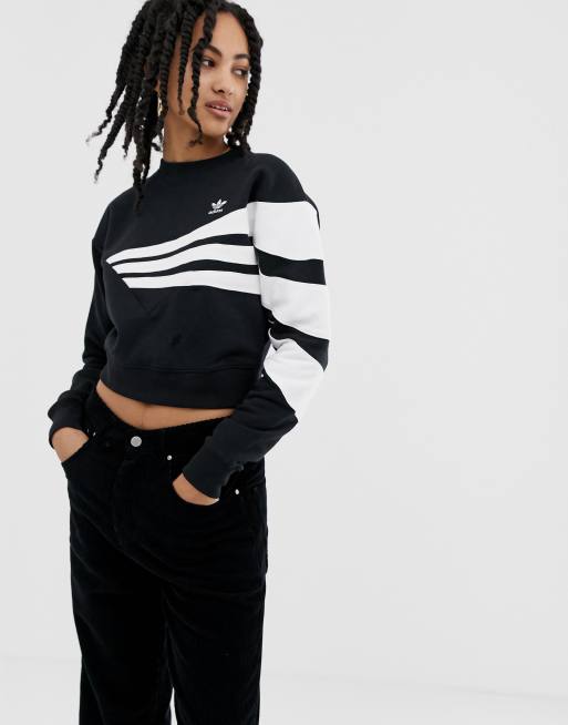 Adidas originals sales linear sweater, adidas Originals Trefoil Linear Sweater met 1 4e ritsje in sales