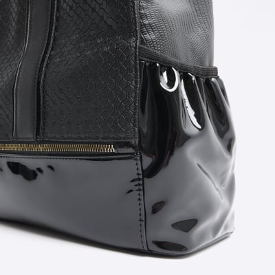 Girls black faux leather backpack bundle River Island