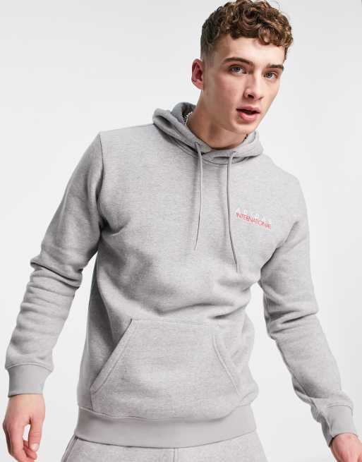 Adidas originals sales sport hoodie, adidas Originals Sports Club Hoodie in gem leerd grijs met print op de achterkant sales