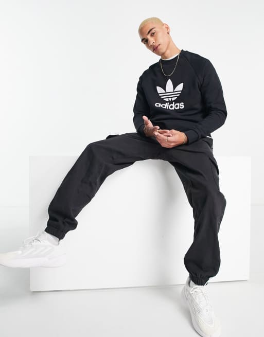 adidas Originals Sweatshirt met groot Trefoil logo in zwart ASOS