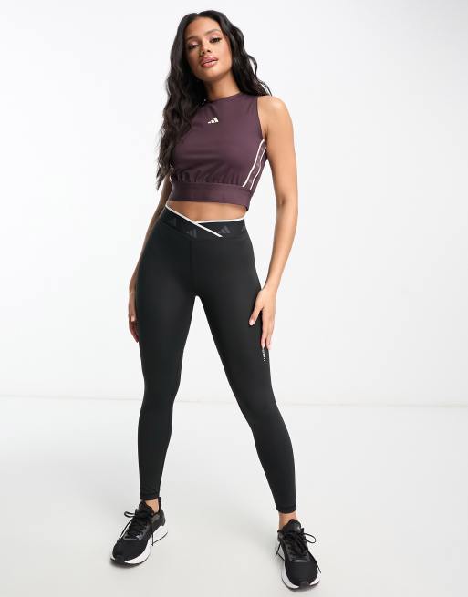 Adidas pants and sales crop top, adidas Training Hyperglam Crop top met 3 stripes en lange mouwen in rood sales