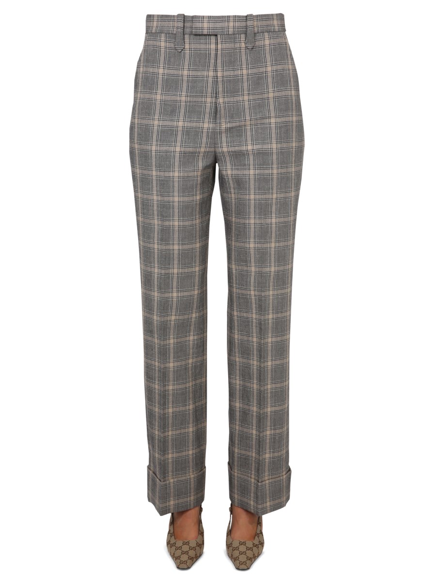 GUCCI LINEN AND WOOL PANTS WITH PRINCE OF WALES PATTERN