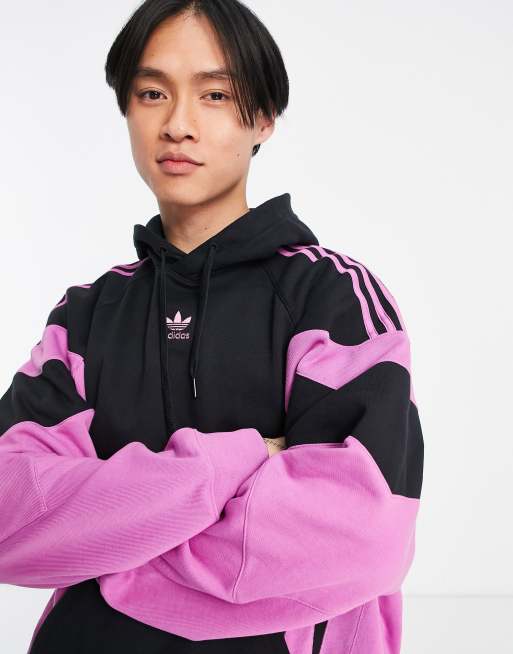 adidas Originals Rekive central logo hoodie in black and pink