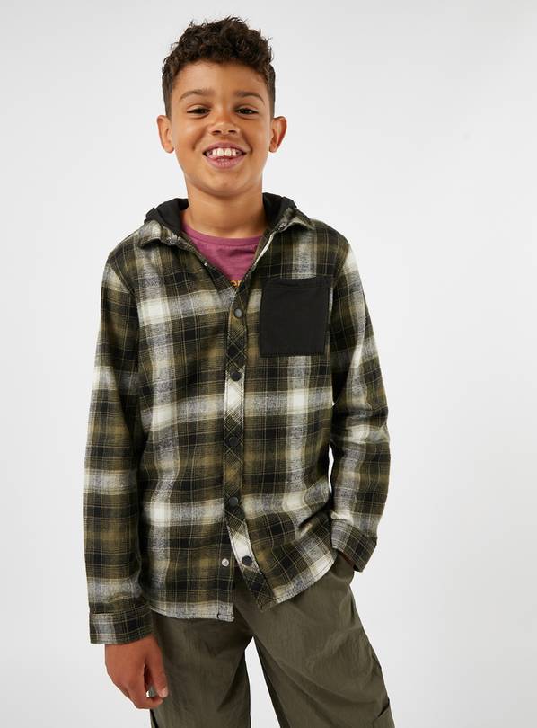 Buy Black Khaki Check Hooded Shirt 3 years T shirts and shirts Tu