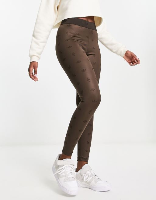 adidas Originals Luxe Lounge Legging met hoge taille en herhaald logo in bruin
