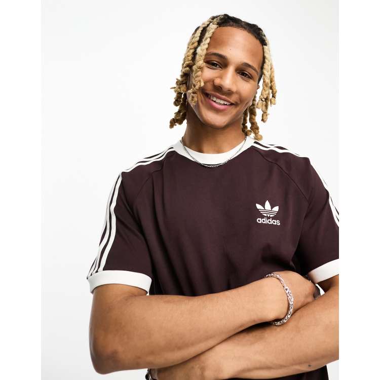 adidas Originals T shirt met 3 Stripes in schaduw bruin ASOS