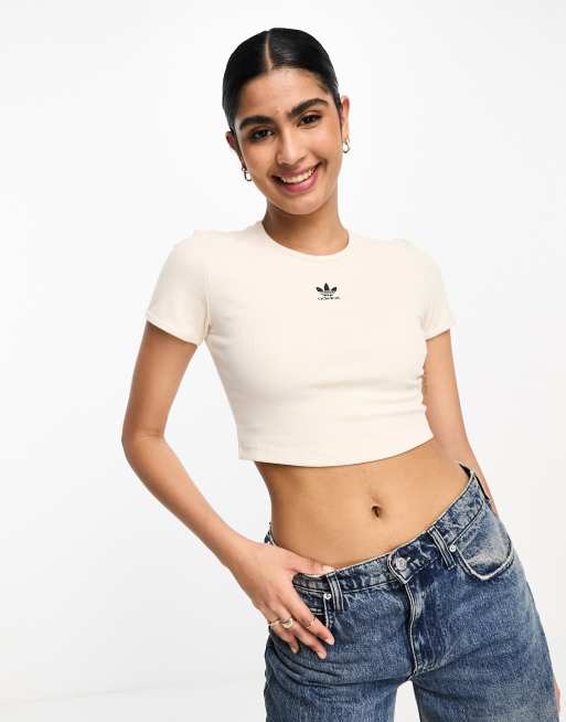 adidas Originals Essential Geribbeld crop T shirt in wonderwit