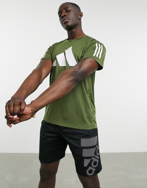 adidas Training T shirt met logo en 3 Stripes in kaki ASOS