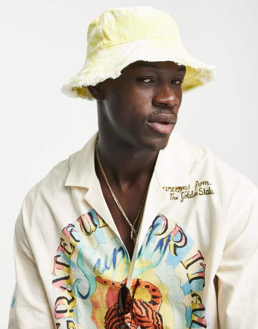 ASOS DESIGN bucket hat in washed lemon with raw edge ASOS