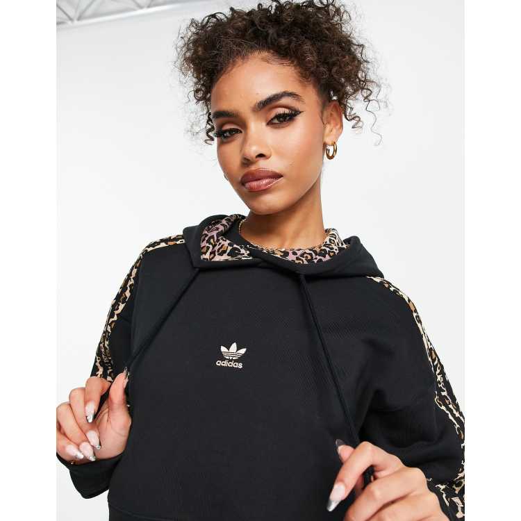 adidas Originals Cropped hoodie met capuchon en luipaardprint