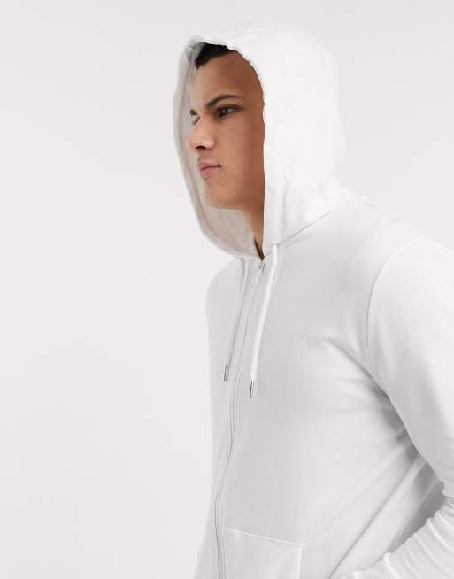Lightweight white zip sales up hoodie, ASOS DESIGN lightweight zip up hoodie in white WHITE ASOS sales