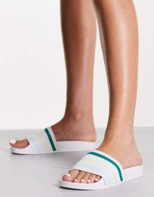 adidas Originals Adilette sliders in white with coloured three stripes