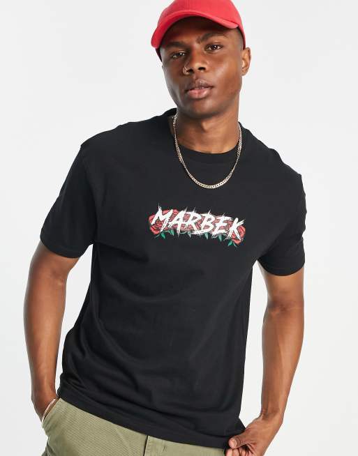 Marbek T shirt nera con stampa del logo con rose ASOS