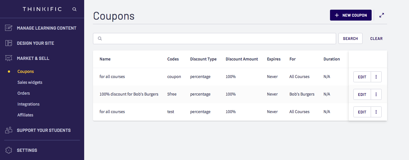 Create Coupons Thinkific