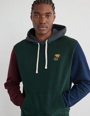 Mens American Eagle Fleece Pullover Hoodie Green Grey Black Small