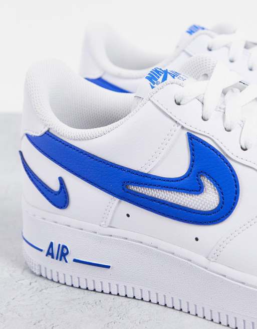 Nike Air Force 1 07 FM multi swoosh trainers in white and blue