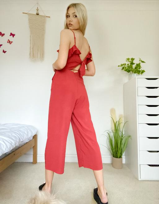 Oasis ruffle tie back jumpsuit in red ASOS