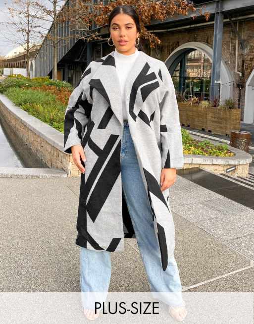 Plus size sales coatigan uk, River Island Plus fallaway abstract coatigan coat in grey sales
