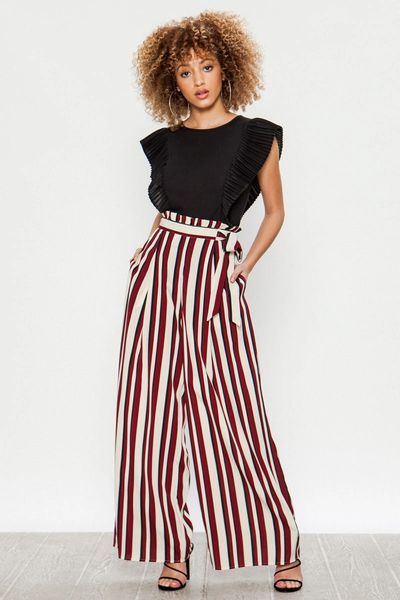 Red and white sales striped wide leg pants, Burgundy Stripe Wide Leg Pants sales