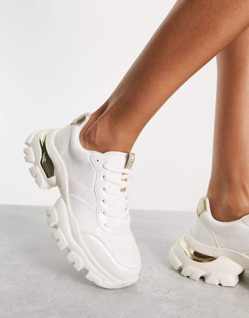 Aldo sales chunky sneakers, ALDO Enzia chunky runner sneakers with gold trim in white sales