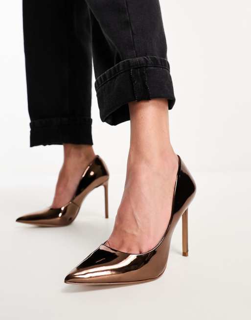 ALDO Stessy 2.0 court heeled court shoes in bronze mirror ASOS