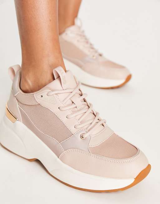 ALDO Goodvibes chunky runner trainers with gold trim in light pink