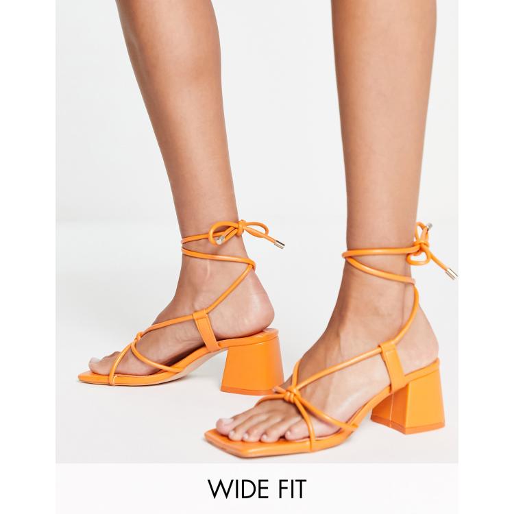 Public Desire Wide Fit Aloha knot strap mid heel sandals in orange